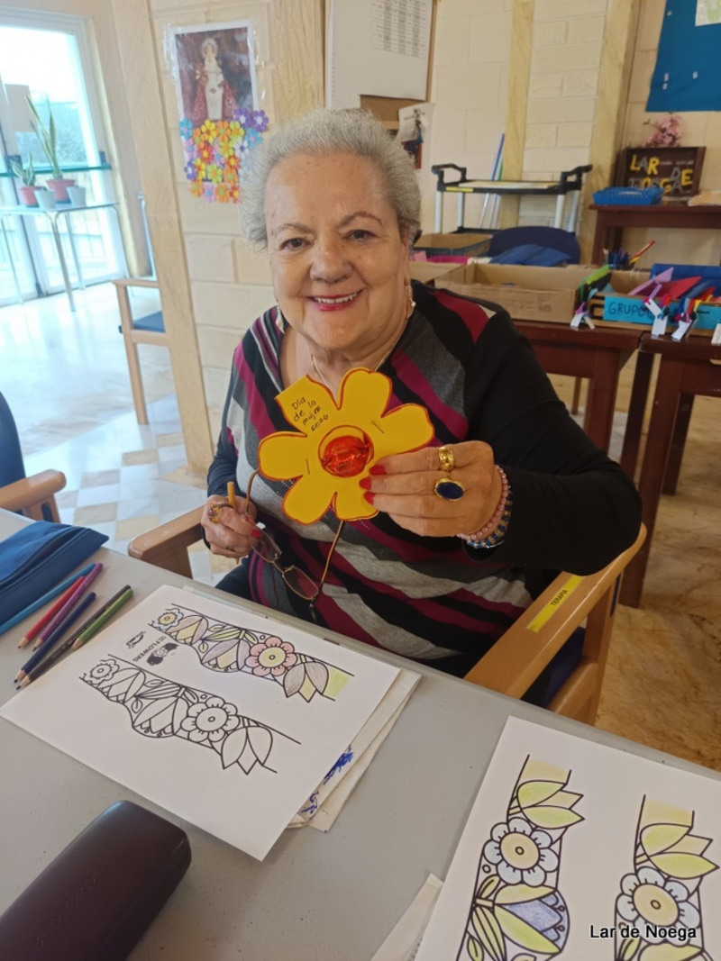 El pasado 8 de marzo, por el Día de la Mujer, en Lar de Noega hemos querido dedicar un momento especial a nuestras residentes con una actividad llena de significado. Juntas decoraron una bonita corona que después lucieron con orgullo, posando así de guapas bajo un mensaje que nos recuerda algo muy importante: “Sé la mujer que le arregla la corona a otra mujer sin decirle al mundo que estaba torcida.”