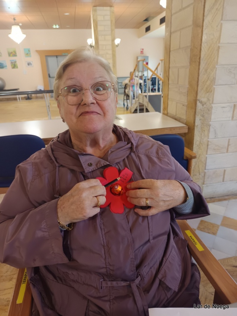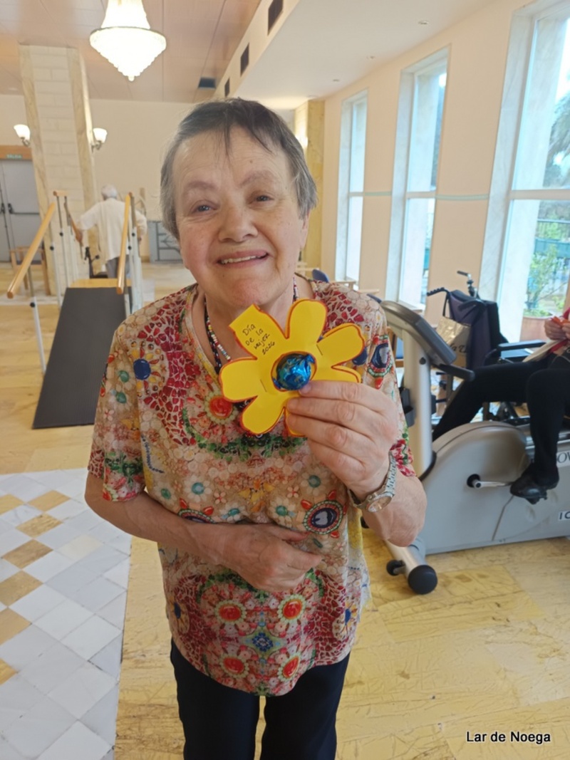 Para completar la actividad, cada residente recibió también un pequeño detalle: una flor acompañada de un bombón, un regalo simbólico para endulzar la jornada y compartir una sonrisa.