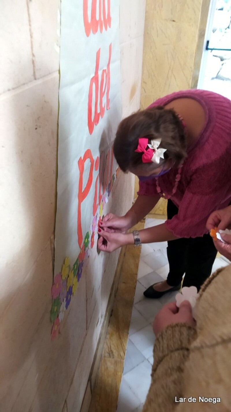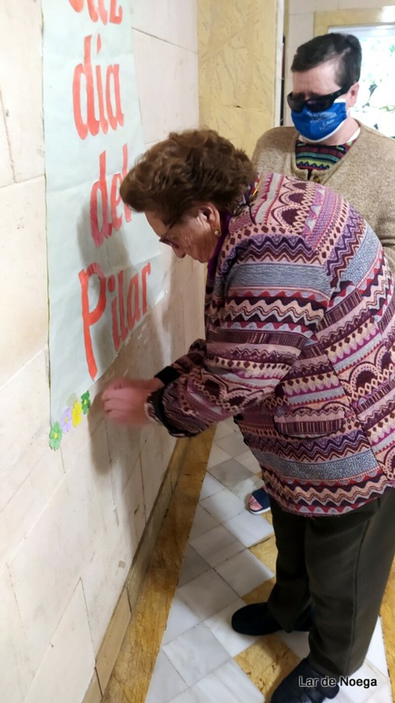 Para conmemorar el Día del Pilar, también Día de la Hispanidad, este año hemos dibujado la figura de la Virgen a la que nuestros residentes honraron con una ofrenda de flores.