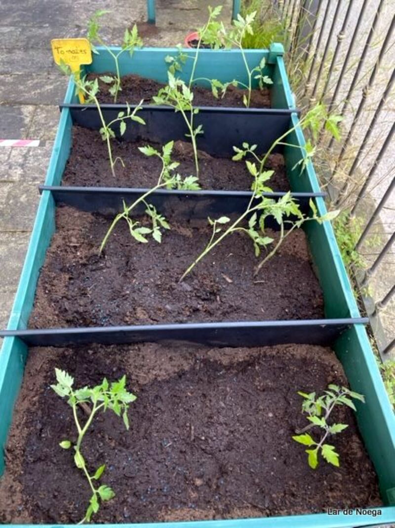 Esta semana, aprovechando el buen tiempo, nos hemos arremangado y entre todos hemos dispuesto la tierra en las jardineras y plantado lechugas, tomates, fresas, además de flores. Estamos tan entusiasmados que ya estamos deseando que salgan los primeros brotes.