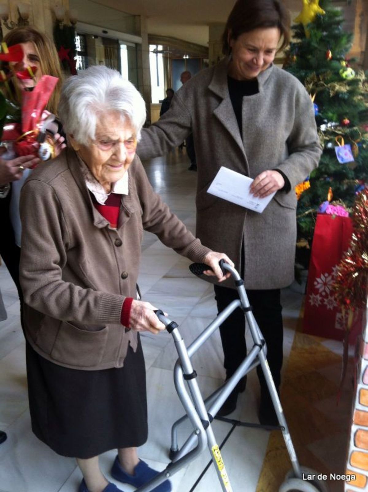 Siguiendo la tradición, la Alcaldesa de Gijón, Carmen Moriyón, dedicó un sentido homenaje a nuestra residente Argentina Fernández Fernández, de 104 años.