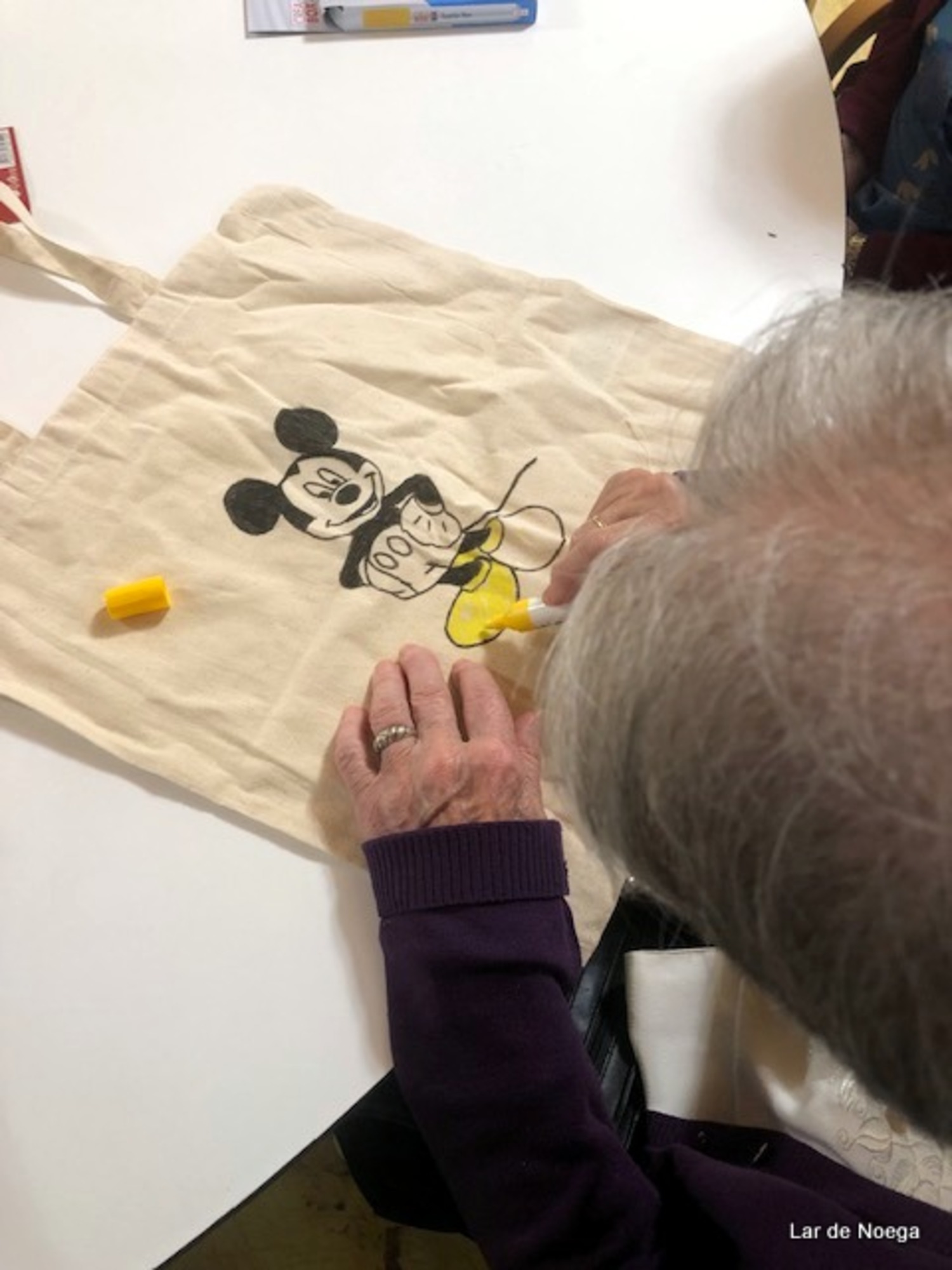 Mariposas, mandalas, estrellas, las populares letronas de Gijón o Mickey Mouse fueron algunos de los diseños realizados por nuestros residentes para decorar su bolsa.