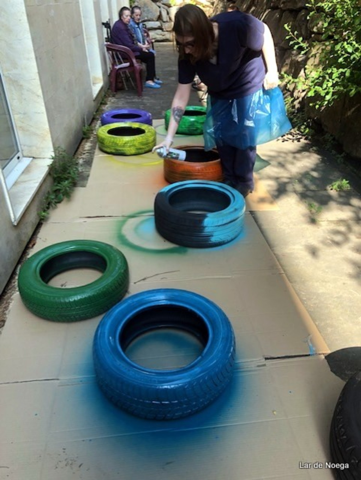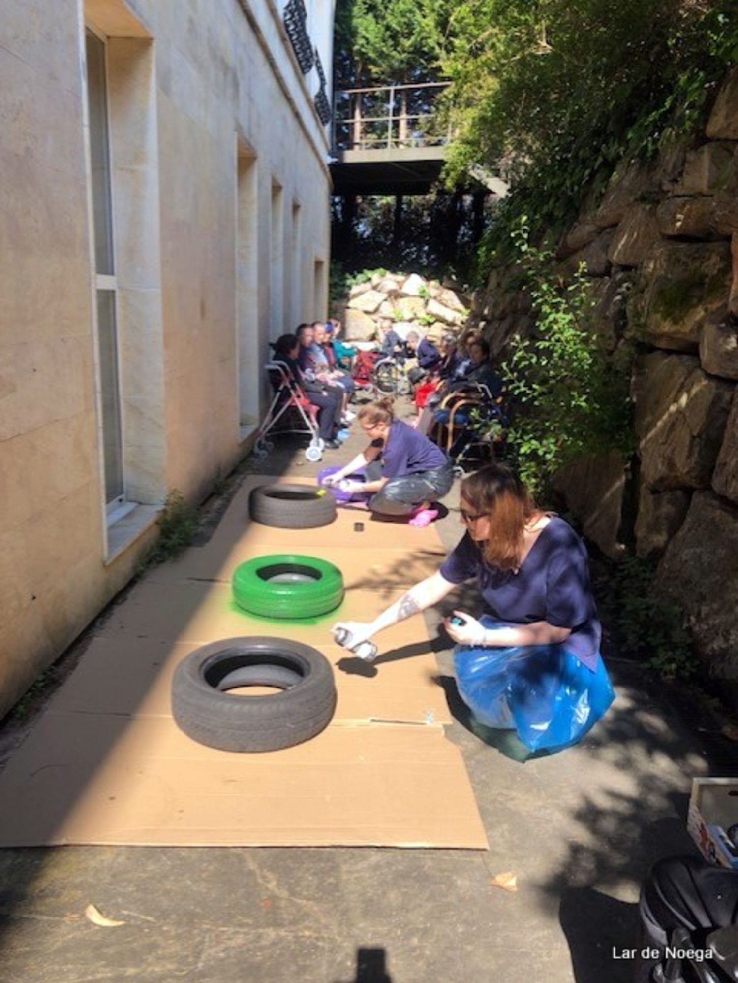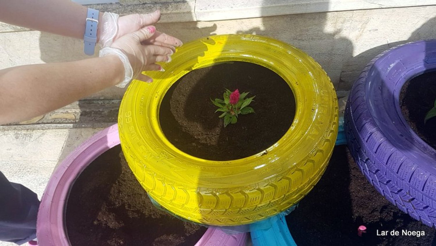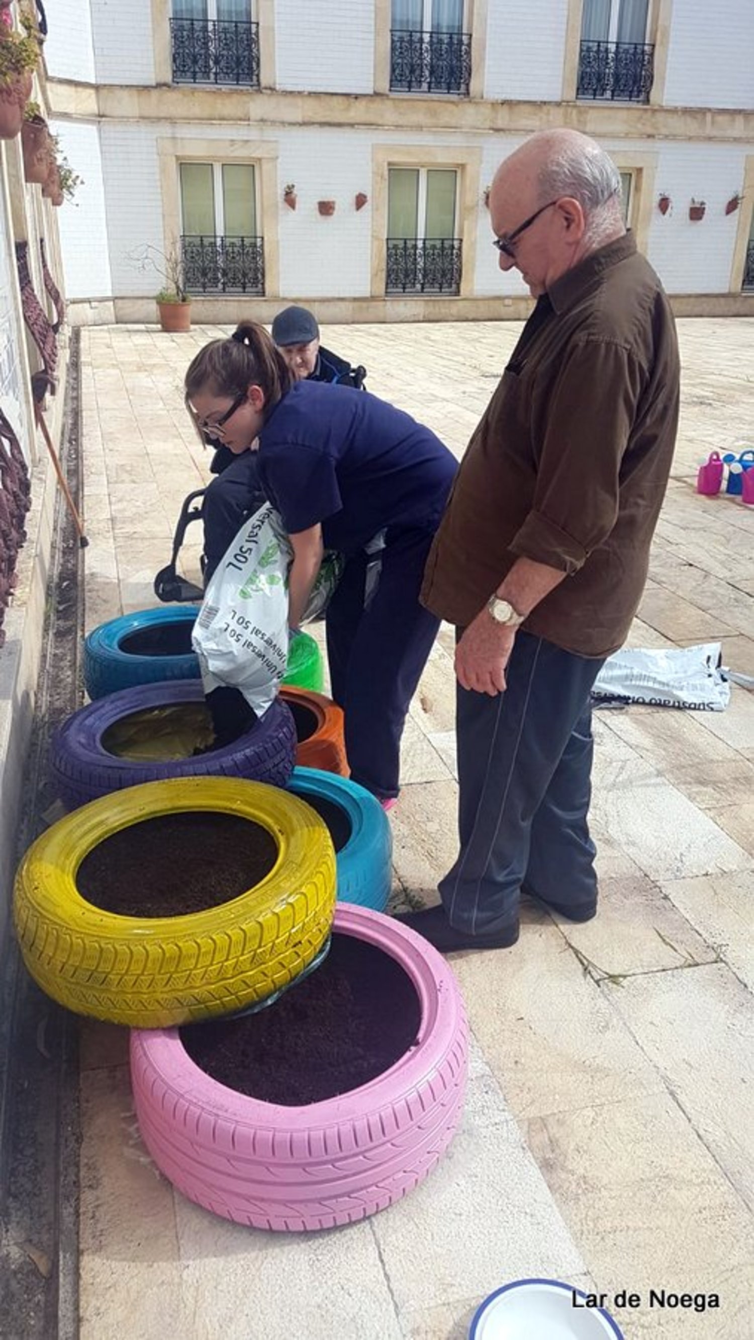 Una de las actividades más fascinantes que realizamos con nuestros residentes en Lar de Noega es el cuidado de plantas y flores. Pero en esta ocasión, hemos querido introducir la idea del reciclaje, utilizando viejos neumáticos.