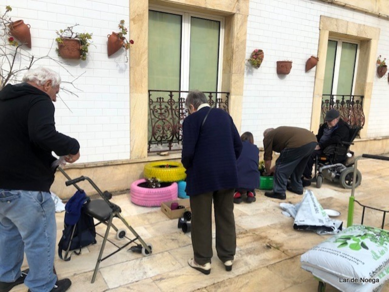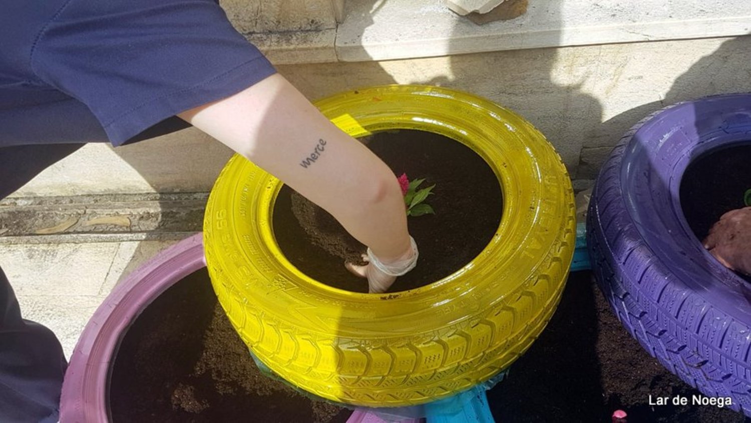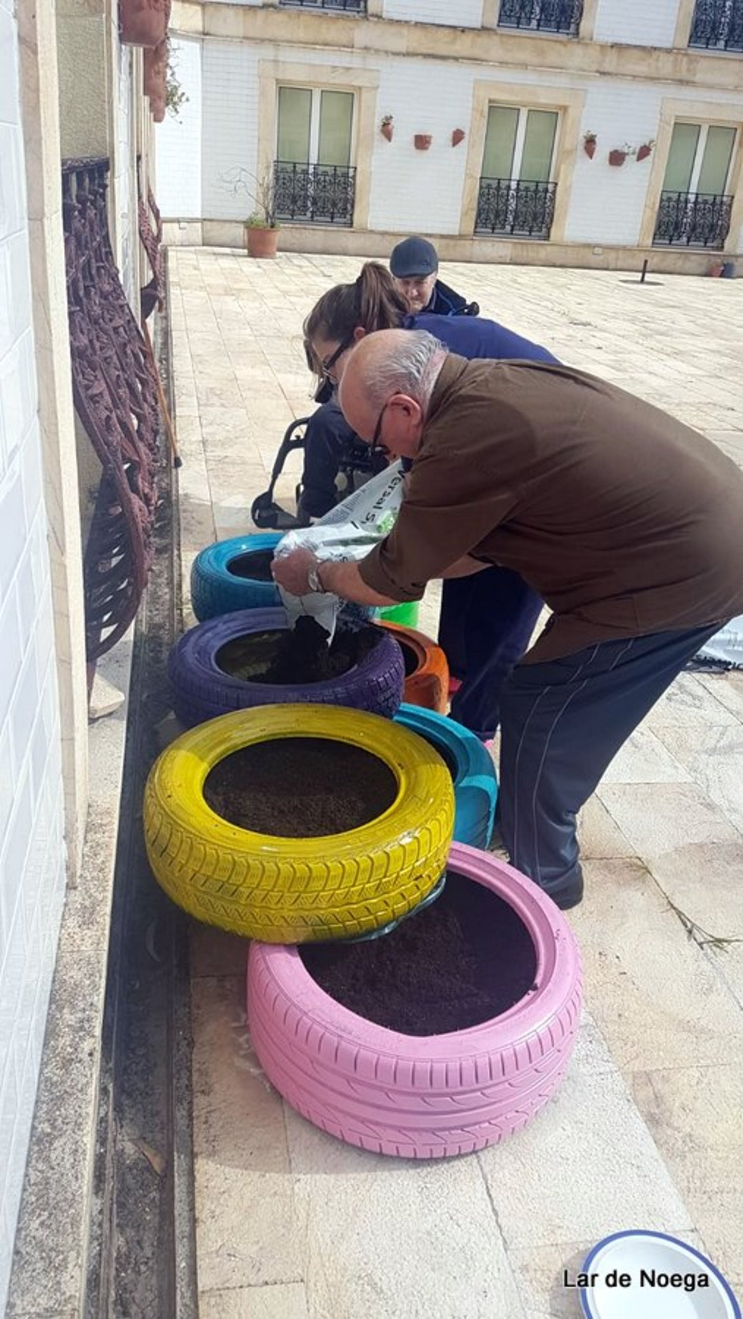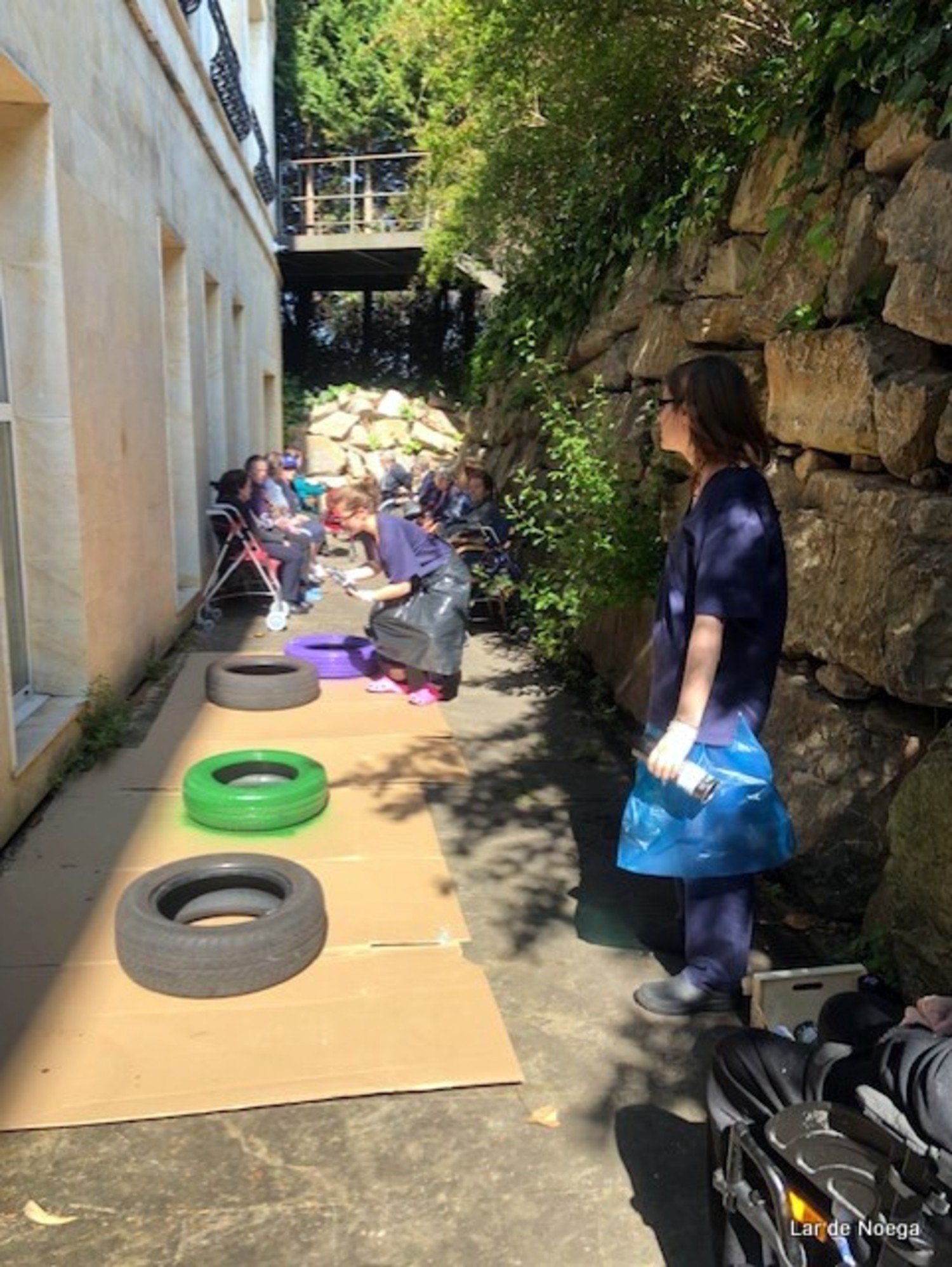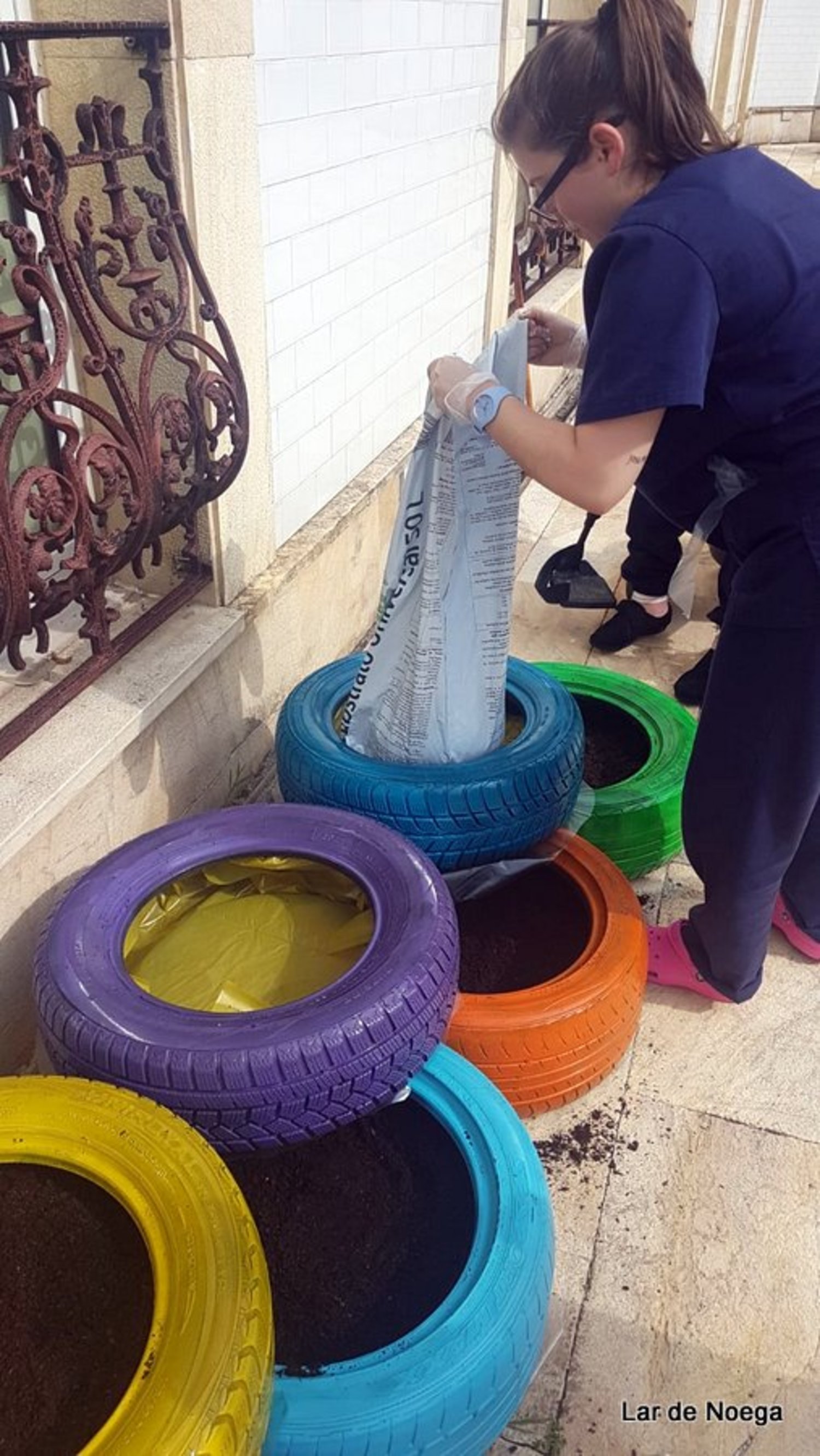 Una de las actividades más fascinantes que realizamos con nuestros residentes en Lar de Noega es el cuidado de plantas y flores. Pero en esta ocasión, hemos querido introducir la idea del reciclaje, utilizando viejos neumáticos.