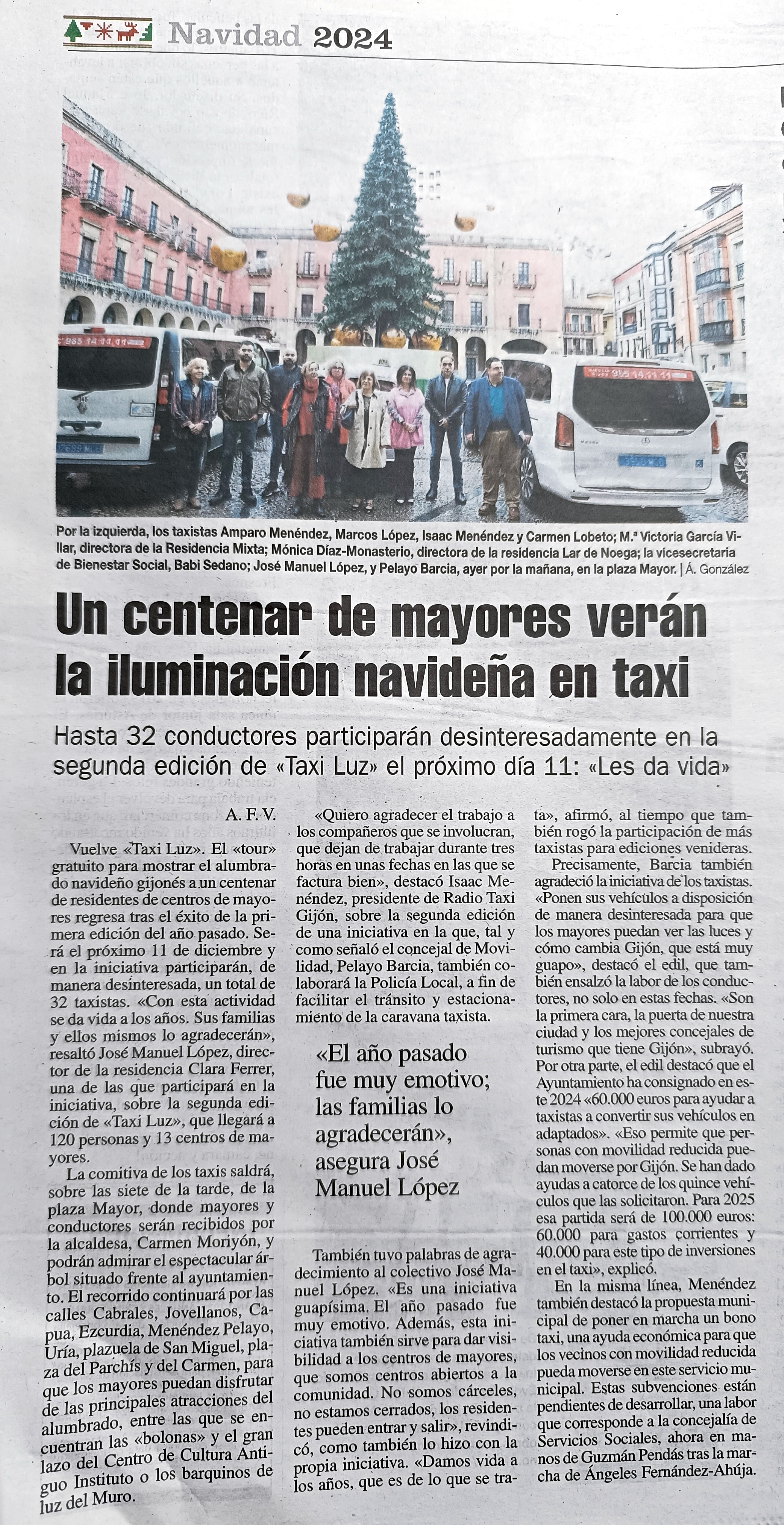 Los taxis de Gijón volverán a sacar a los mayores a ver las luces de la ciudad